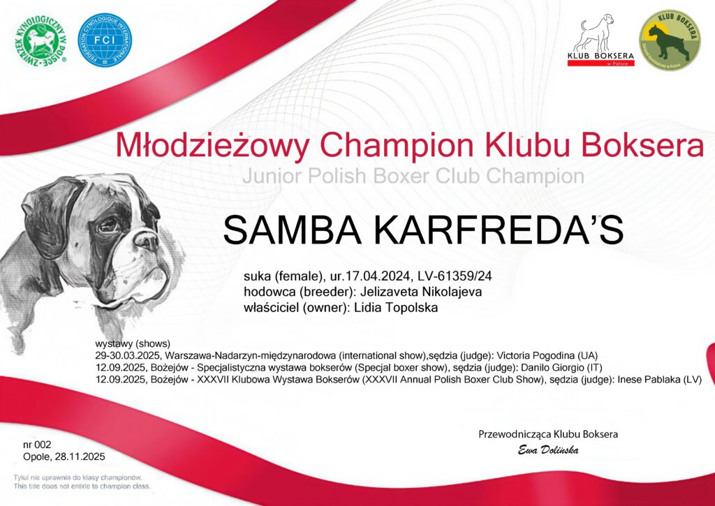 Klubowa Wystawa Bokserów – Bożejów 2025 – wyniki klubowej wystawy2025 Bożejów