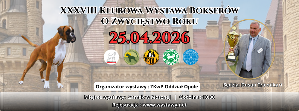 Klubowa Wystawa Bokserów o Zwycięstwo Roku 2026, 25.04.2026, Zamek w Mosznej, ZKwP Oddział Opole